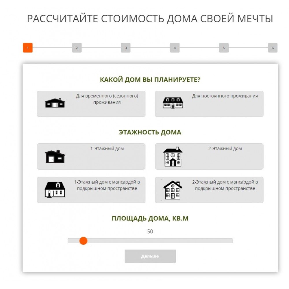 Квиз конфигурации дома от веб-студии Максвебсайт г. Богданович