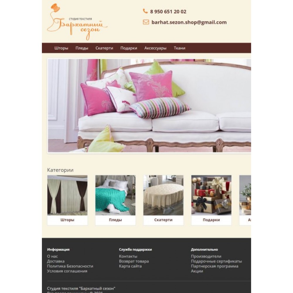 Интернет-магазин студии текстиля "Бархатный сезон" от веб-студии Максвебсайт г. Богданович