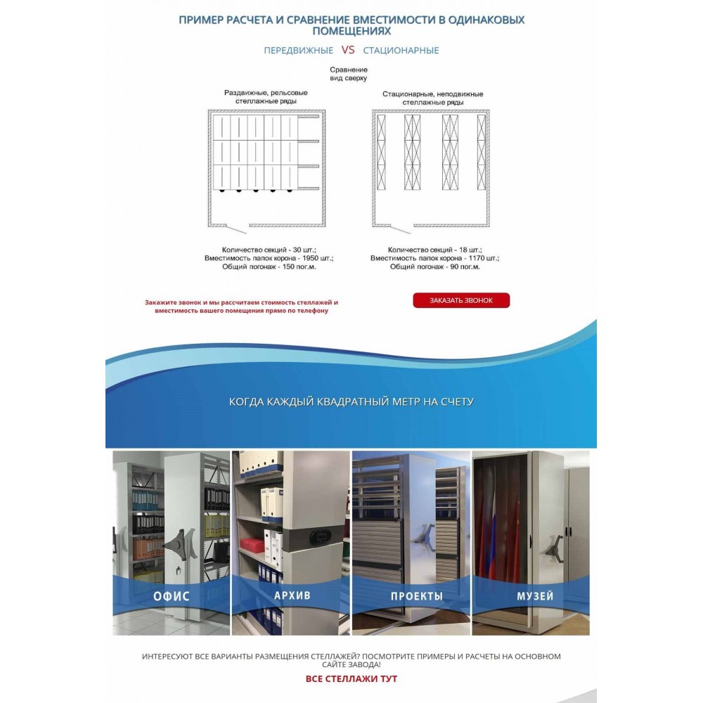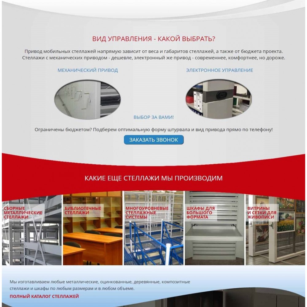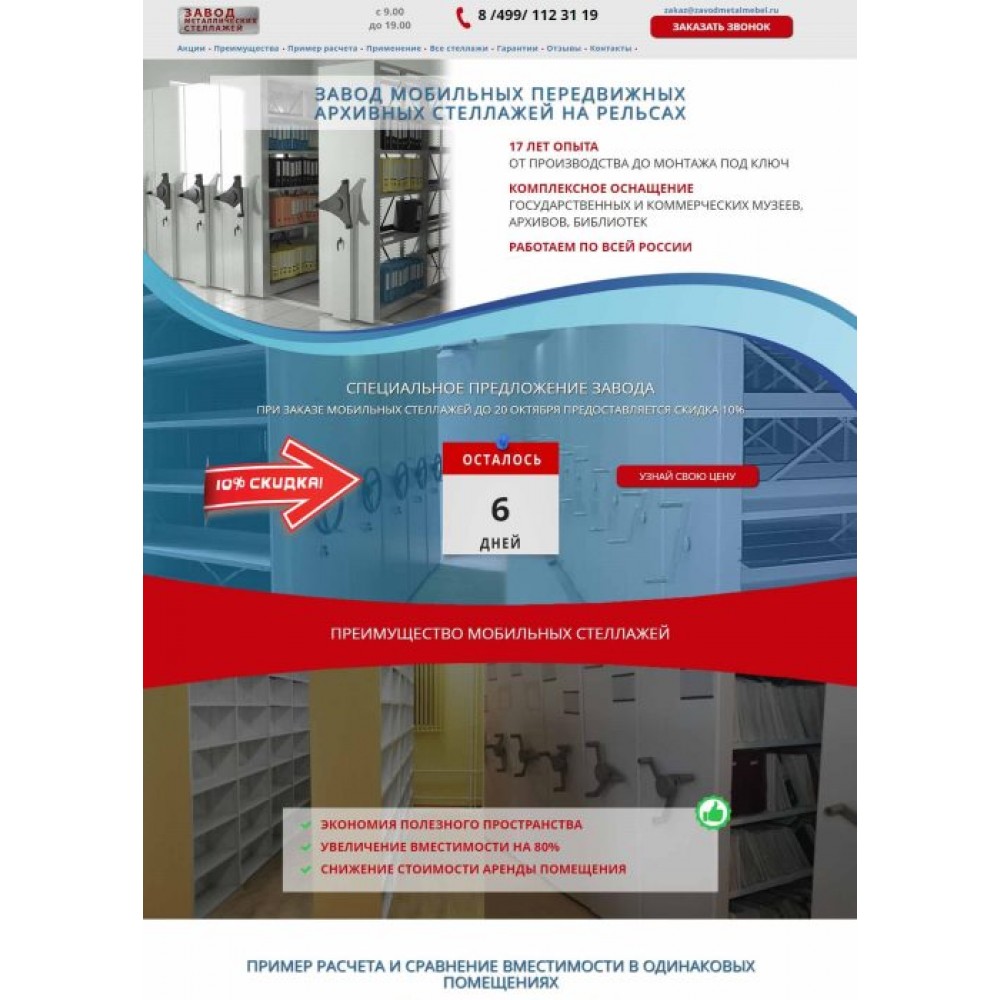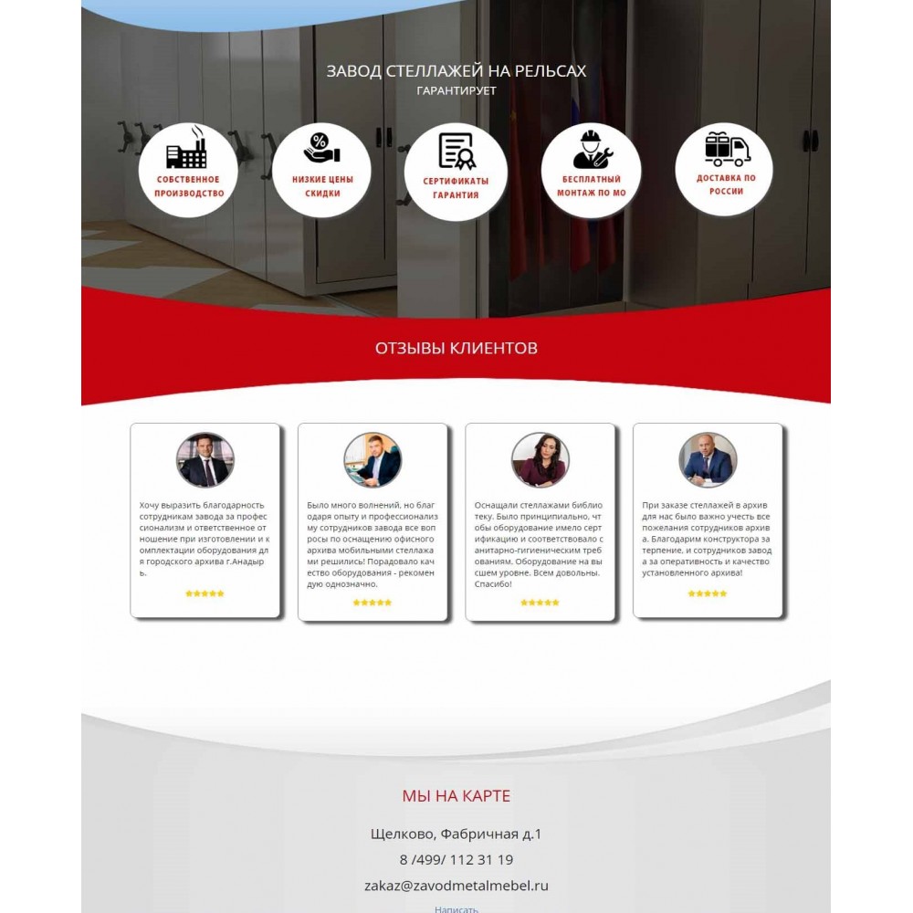 Рекламная страница (лендинг) завода мобильных стеллажей от веб-студии Максвебсайт г. Богданович