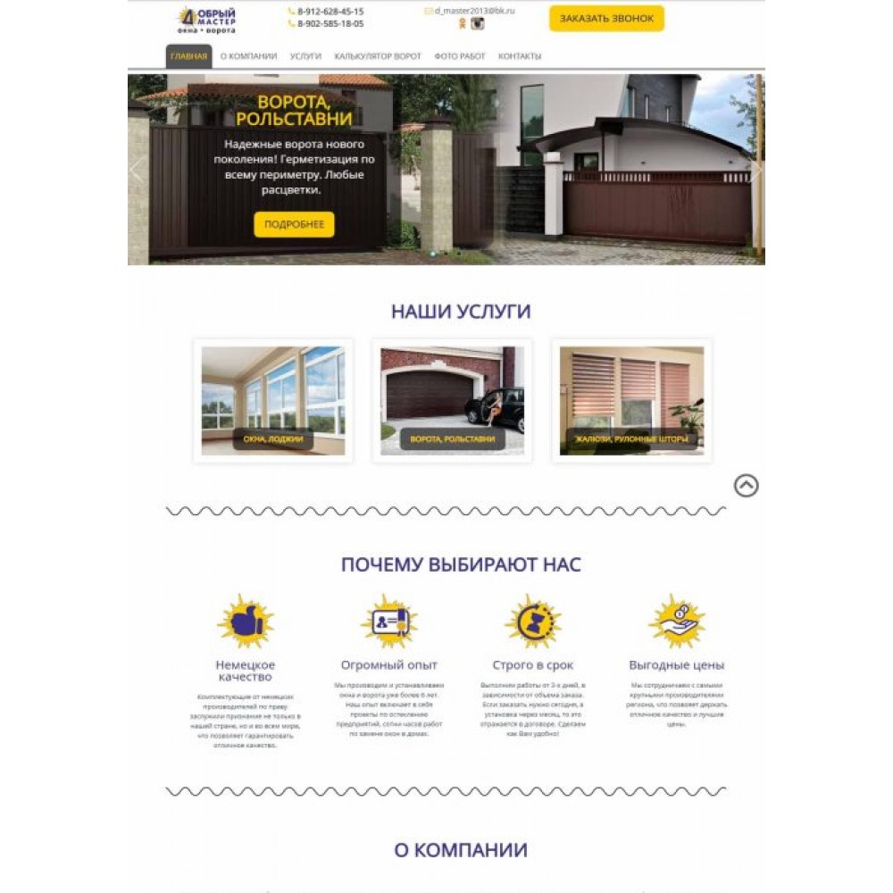 Сайт каталог услуг компании по установке окон и ворот г.Ревда от веб-студии Максвебсайт г. Богданович