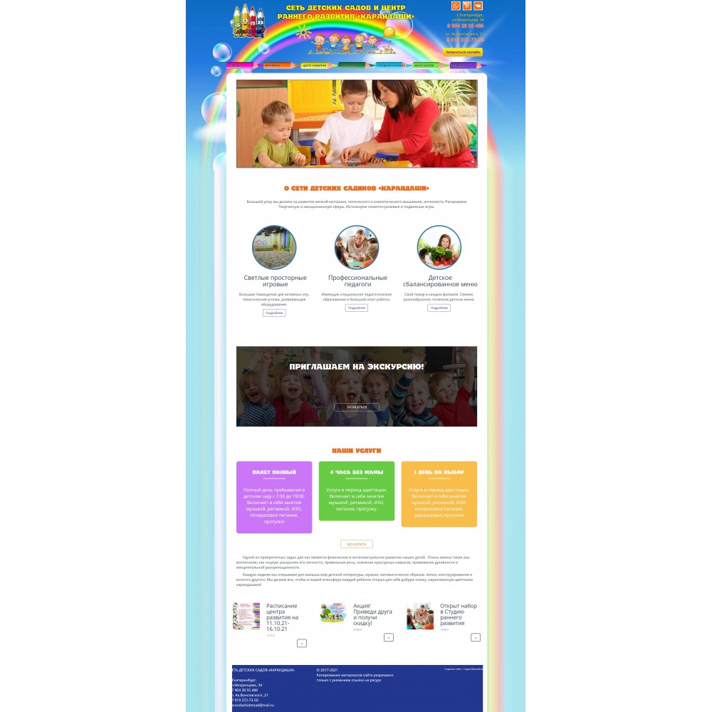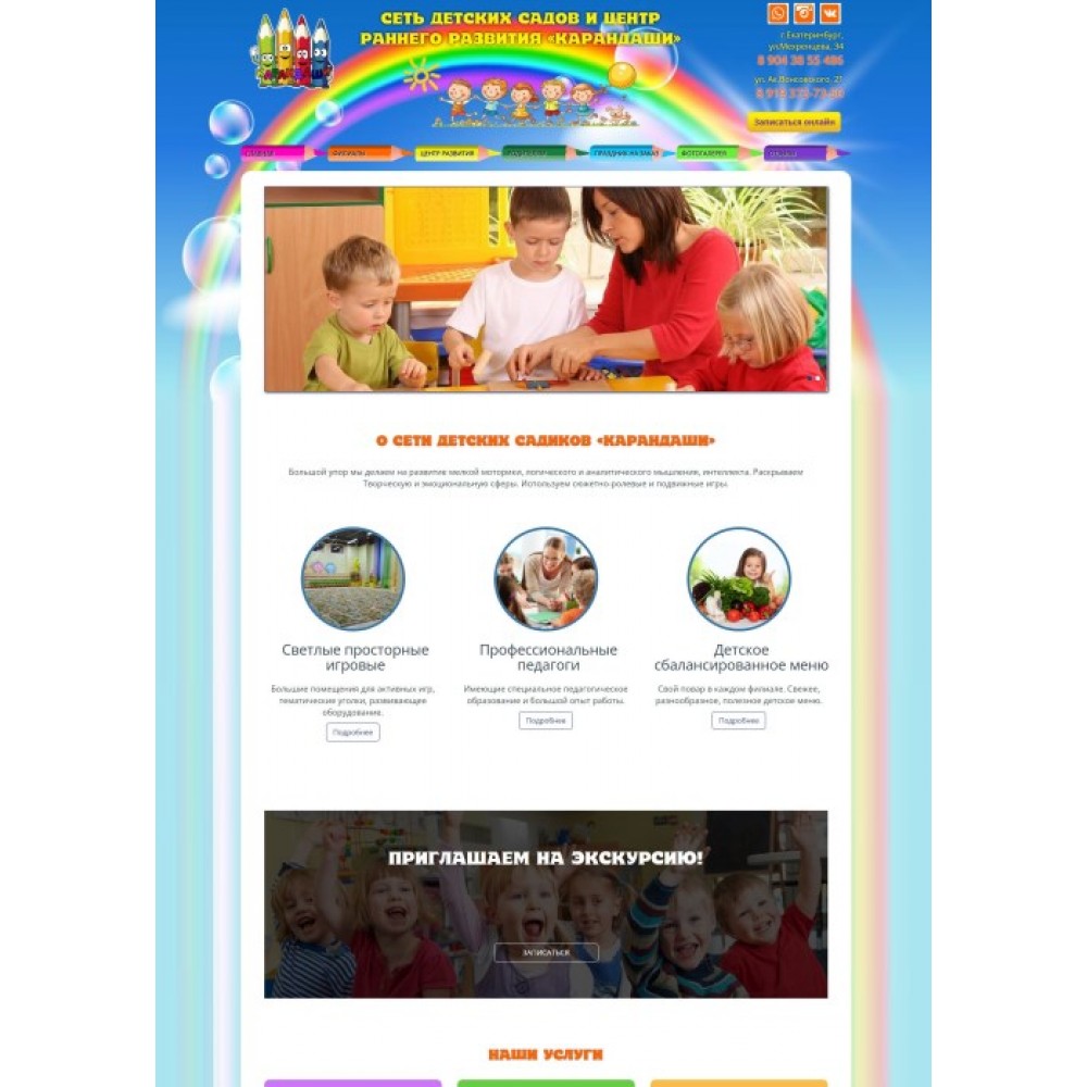 Сайт сети частных детских садиков Карандаши от веб-студии Максвебсайт г. Богданович