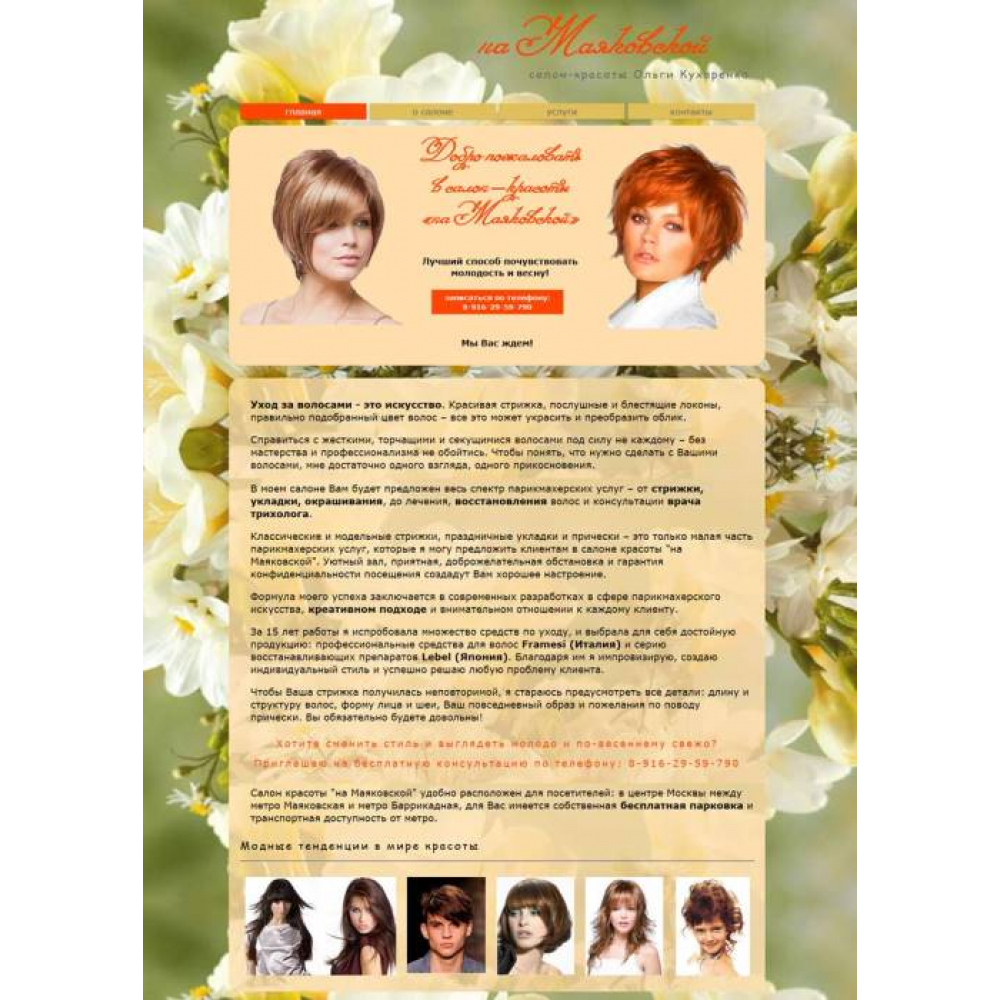 Сайт-визитка Салона красоты Ольги Кухаренко г.Москва от веб-студии Максвебсайт г. Богданович